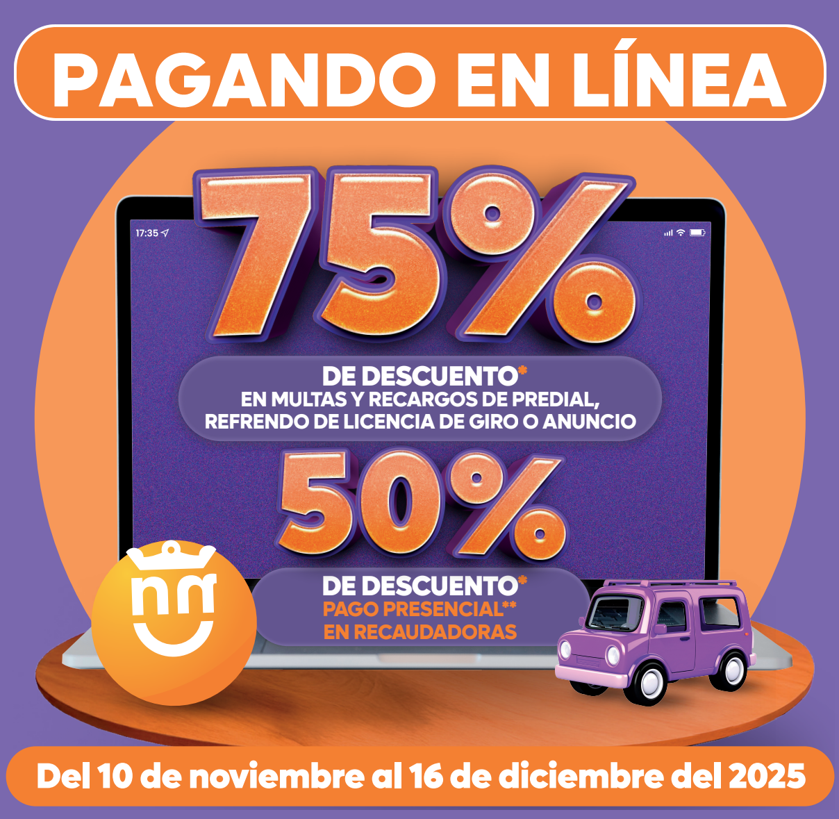 *** Tratándose de multas de movilidad, continuará aplicándose un 80% de descuento en todas las claves de infracción, asímismo, hasta el 75% de descuento en los recargos generados hasta el 31 de diciembre del 2024, pagando la totalidad del adeudo por internet y ChatBot; en caso de realizar el pago por cualquier otro medio, el descuento será del 50%.