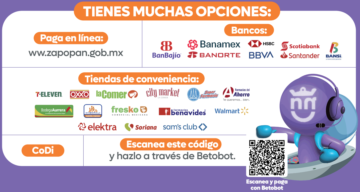 Impuesto predial: en caso de realizar el pago por cualquier medio diferente a internet, QR, ventanilla bancaria, tiendas de conveniencia, ChatBot y CoDi, el descuento aplicado será del 50%, únicamente en multas y recargos hasta su última actualización.