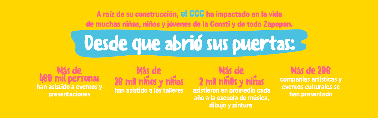 A raiz de su construcción, el CCC ha impactado en la vida de muchas niñas, niños y jóvenes de la Consti y de todo Zapopan. Desde que abrió sus puertas, más de 400 mil personas han asistido a eventos y presentaciones, más de 20 mil niños han asistido a sus talleres, más de 2 mil niños han asistido cada año a la escuela de música, dibujo y pintura, más de 200 compañías artísticas y eventos culturales se han presentado.